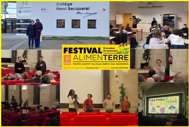 Le 20 novembre, la thématique était autour de l’alimentation, de son évolution et de l’impact carbone quelle engendre. A ce titre, le collège d’Avoine représenté par son chef cuisinier Vincent Leroy et Madame Agen Gestionnaire du collège ont évoqué leur réussite quant au respect de la loi égalim, ils font figure d’exemple car près de 2/3 des produits consommés par les élèves sont issus de l’agriculture biologique. Ensuite, Imelda Agondanou Chargée de programme agricole en Afrique de l’ouest pour le ROPPA a évoqué la nécessité que chaque citoyen s’engage et fasse plaidoyer afin que les politiques et que les structures publiques respectent et protègent les habitants de leur territoire.